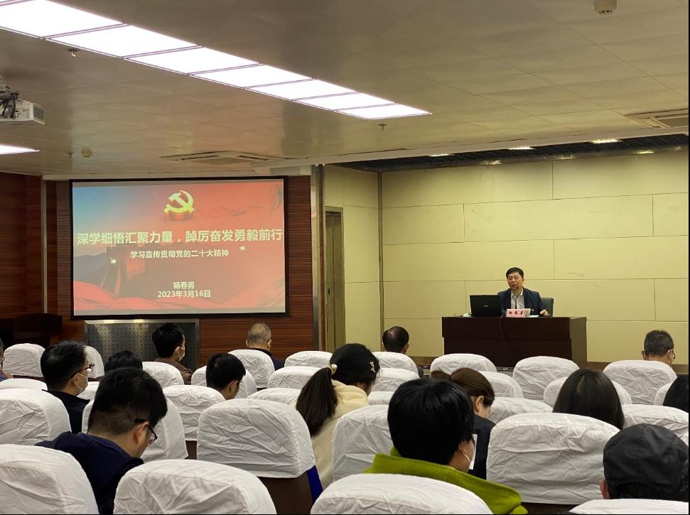 3月16日上午,學校黨的二十大精神宣講團成員、電信學院黨委副書記、院長楊春勇教授結合工科學科特點,為電信學院、生醫學院全體教工及學生黨支部書記開展主題為“深學細悟匯聚力量,踔厲奮發勇毅前行”的宣講。報告會由生醫學院黨委書記賀銘主持。