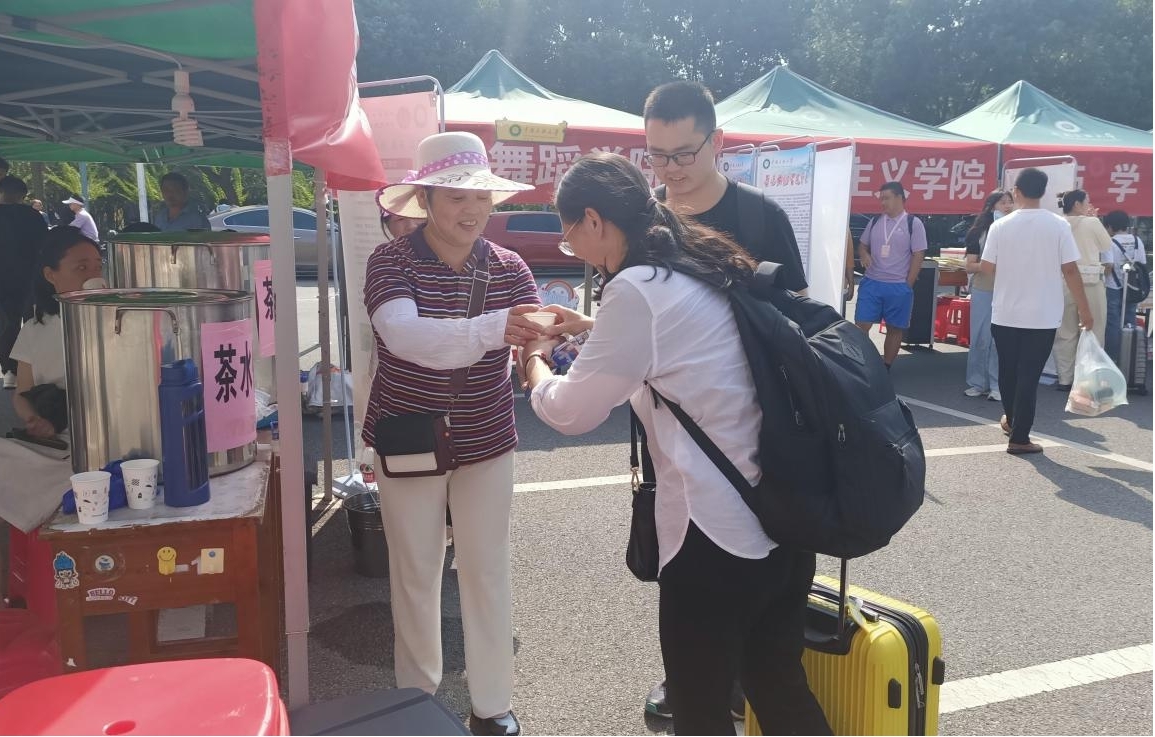 迎新總站為新生設立了茶水供應點。 張海鷗攝