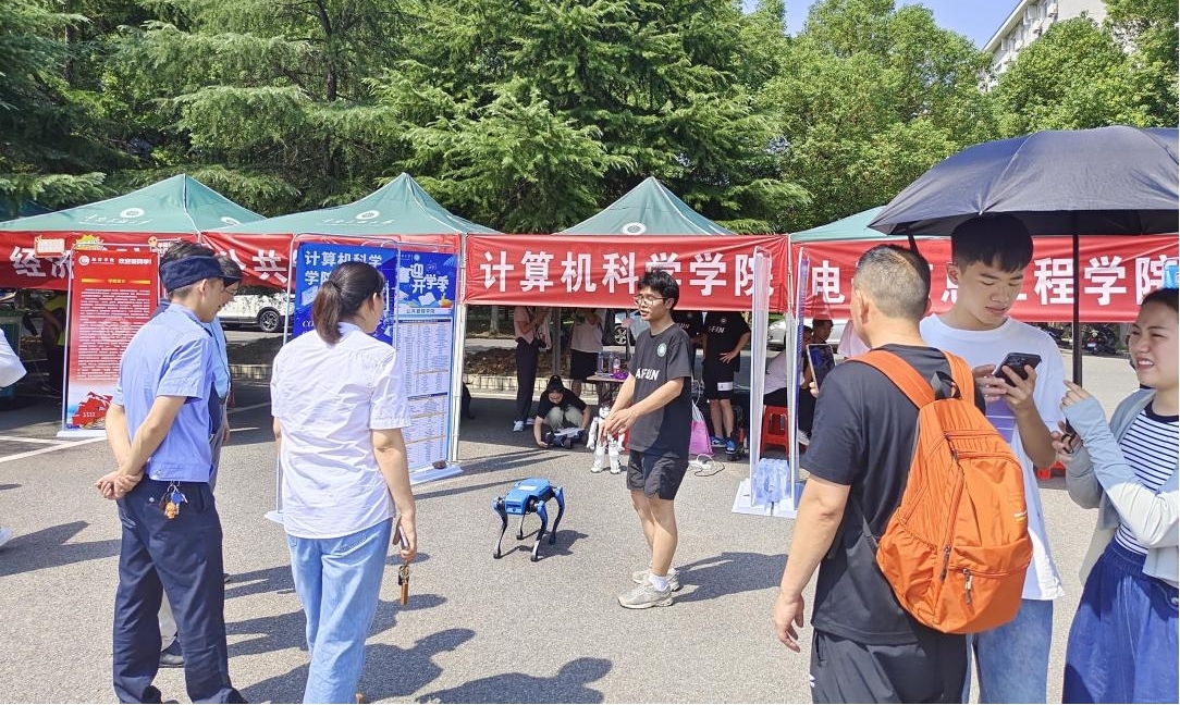 九月初的校園,天氣依然炎熱,但在計算機科學學院迎新站點,比天氣更“熱”的是火熱的迎新氛圍。計科學院今年的迎新可謂花樣十足,倍有排面,最亮眼的則是迎新機器人的加入。9月7日上午,這些小小“迎新使者”滑著太空步、做著后空翻、說著熱情的話語,傾情迎接新同學的到來。