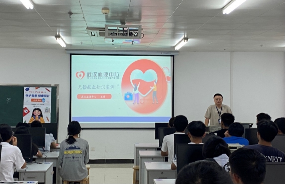 隨后,武漢市血液中心專家王丹就獻血問題為學生們進行知識科普。她說,國家在無償獻血方面政策優厚,當獻血額度大于等于800ml后,本人用血終身免費,其家屬也能享受相關利好政策。她表示,適量獻血有利于血液更新,增強免疫力和抗病力,希望廣大大學生積極參與,為社會貢獻一份“血液力量”。