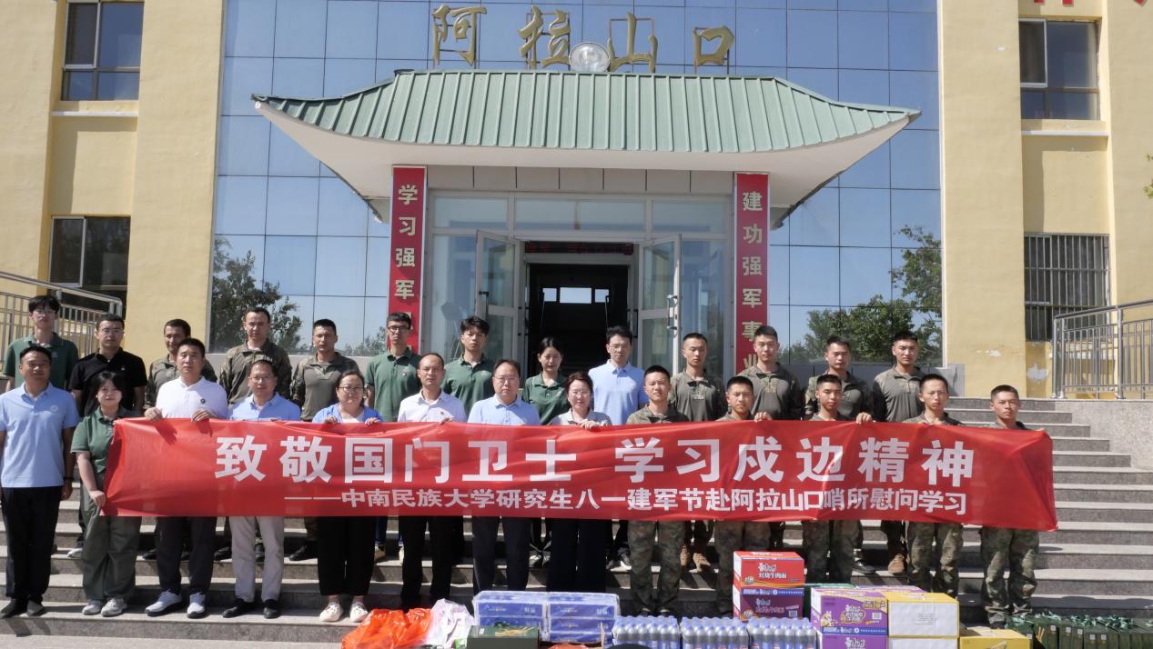 在八一建軍節之際,師生一同前往博州阿拉山口邊防連和江巴斯邊防連開展愛國主義教育。大家參觀榮譽室、聆聽愛國故事、感悟戍邊精神。在江巴斯邊防連門口,學生黨員代表鄧鴻程領誓,師生黨員重溫入黨誓詞。
