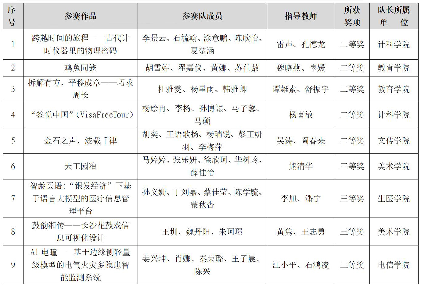 此次4C大賽校級選拔賽共收到各類作品73件,評審組遴選出38件作品參加中南賽區的比拼,獲省級一等獎14項、二等獎6項、三等獎12項。經過中南賽區組委會嚴格審查,我校有9件作品獲得國賽推薦資格。從7月17日開始,參賽師生們頂著酷暑,先后奔赴上海、南京、泰安、杭州、長春五大賽場,經過1個月的激烈角逐,捷報頻傳,我校9件作品先后榮登獲獎榜單。
