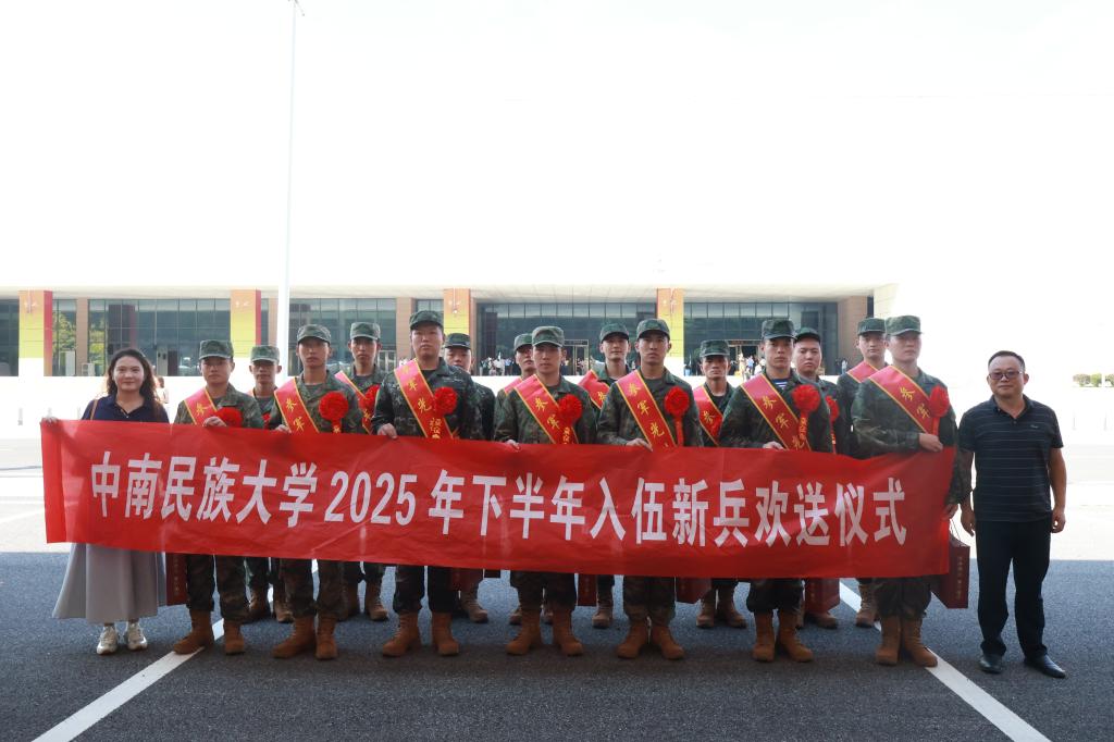 青春獻予強軍夢,砥礪奮進正當時。經過嚴格選拔,我校18名學子由硚口區武裝部批準應征入伍,即將踏上保家衛國的光榮征程。9月15日下午,我校2025年下半年入伍新兵歡送儀式在蔡甸區野戰國防園舉行。學校人民武裝部副部長劉君強、國防教育辦公室相關老師及退伍大學生代表到場,共同歡送新兵。