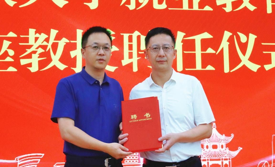覃瑞向夏曉華頒發(fā)聘書。就業(yè)與校友工作處供圖