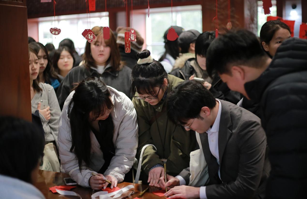 本次活動立足青年視角,探尋中華文化精髓與中國發展脈動,搭建青年間的友好交流橋梁。活動恰逢元旦佳節,中韓師生齊聚校園“元旦迎春”活動現場,沉浸式體驗寫春聯、剪紙、編結、拓印等中華傳統文化、手工藝術與濃厚的中國年味。
