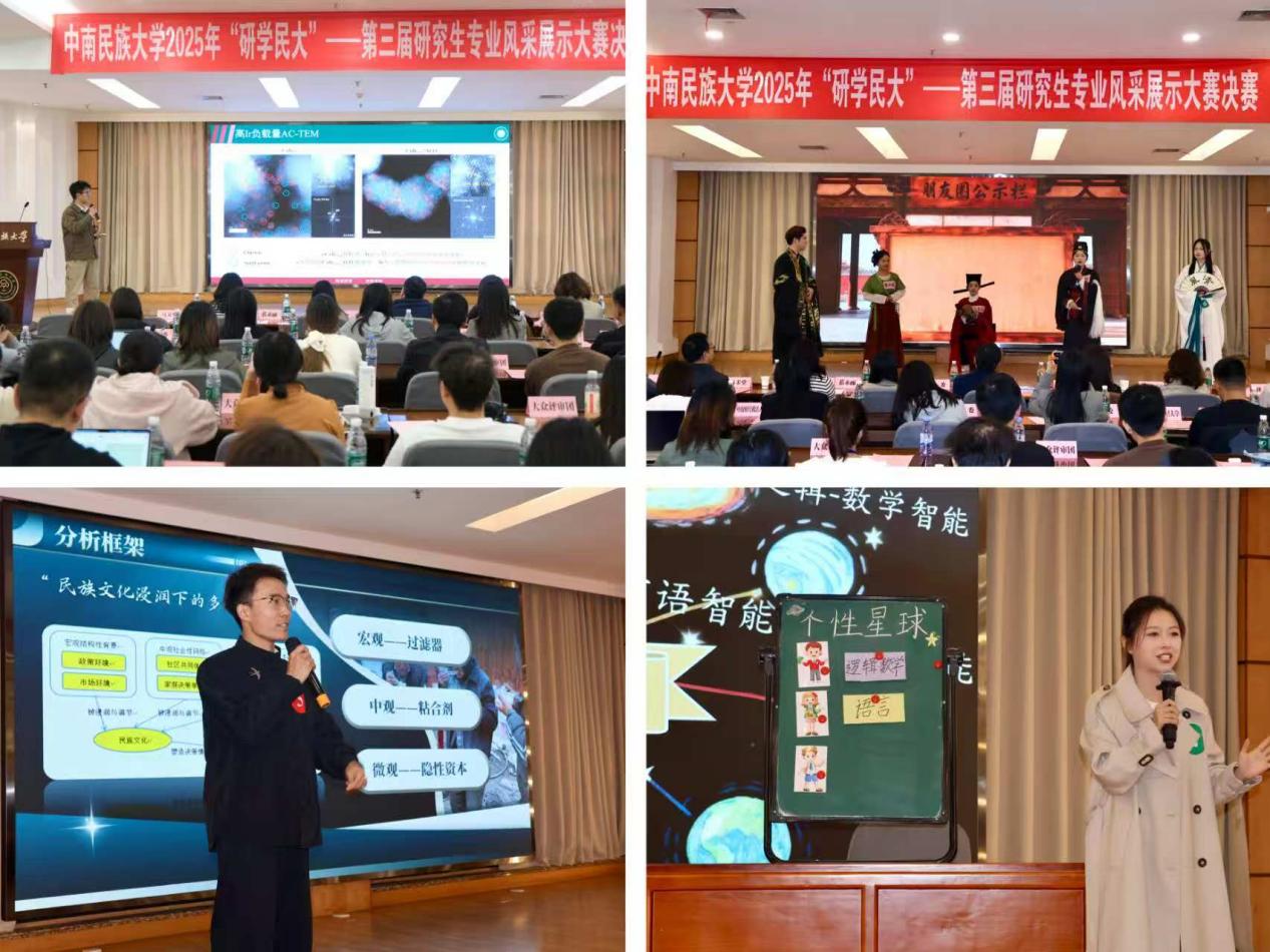 校研究生會申報的“‘研學民大’——中南民族大學研究生專業風采展示活動”項目以賦能學術成長、激發創新活力為宗旨,設立“科啟新知”與“精研所致”雙賽道,覆蓋文、理、工、藝多學科,創新“三維聯動+全透明化”評分模式,構建“賽前—賽中—賽后”全周期服務機制,已累計吸引120支團隊、600余名研究生參與。三屆活動線下吸引超2800人到場,線上互動覆蓋近萬人次,相關報道總閱讀量超2.5萬。依托賽事、課程、實踐等載體,學生學術表達與成果轉化能力得到錘煉,多個團隊實現從賽場到期刊發表、學術會議的進階,部分項目落地教學與社會服務,有效促進學術成果向育人實效與社會價值的轉化。
