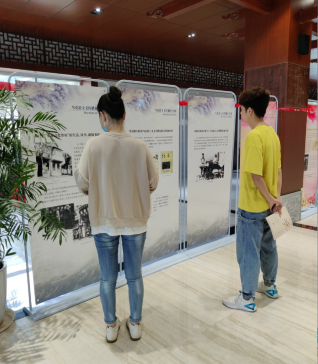 展覽以“馬克思主義傳播在中國”為主題,以歷史文獻為支撐,以編年體的形式生動形象地展現(xiàn)了百年來馬克思主義在中國的傳播歷程。展覽包括44幅版面,“西學東漸——近代中國馬克思主義的最初譯介”、“必由之路——十月革命促進了馬克思主義在中國的傳播”“萬象更新——建黨后馬克思主義著作的翻譯、出版和傳播” “劈波斬浪——白色恐怖下傳播真理的壯麗詩篇”“源頭活水——延安時期開啟馬克思主義中國化的新時代”“理論飛躍——新中國經(jīng)典著作編譯工作的整體推進”六個部分依次布展,吸引眾多師生參觀學習。