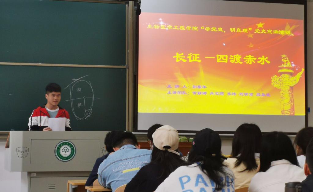為進一步加強黨史學習教育,強化學生理想信念教育,4月19日至27日,生醫學院“我來講黨課”學生黨員宣講團成員分赴各團支部開展宣講活動。在學院老師指導下,宣講團隊經過了近1個月時間的集體備課,多次集中討論、完善修改課件,并通過“學黨史,明真理”黨員微課大賽,遴選了8支隊伍深入團支部開展黨史宣講活動。