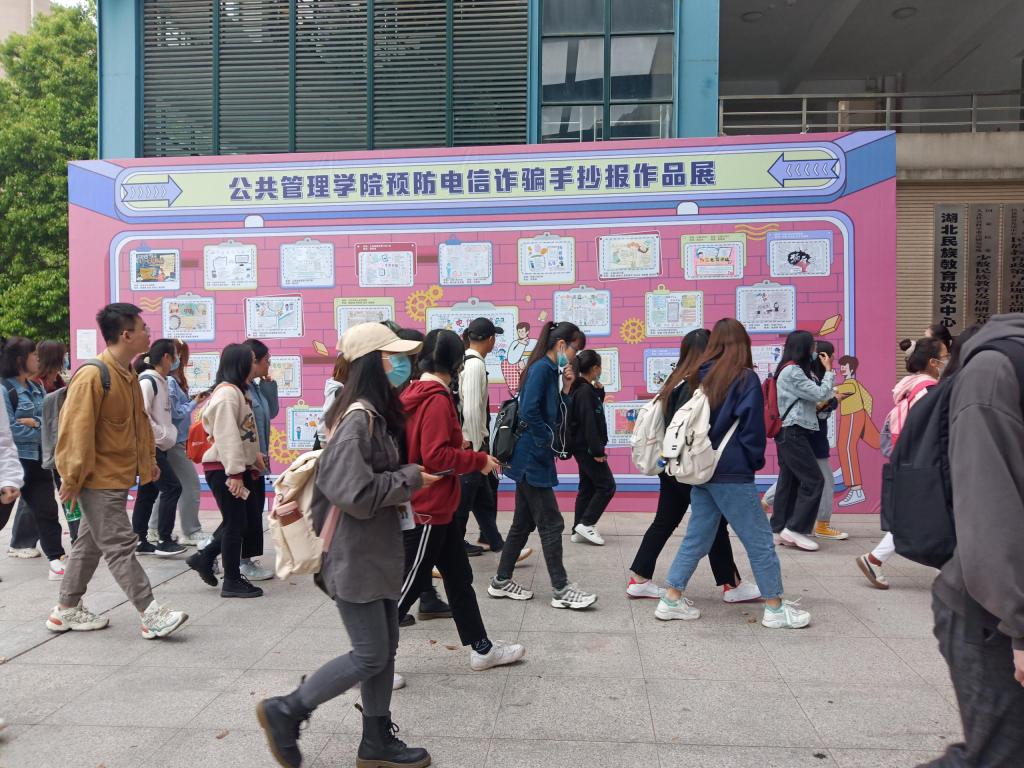 同學們在反電信詐騙作品展前駐足觀看。師軍強 攝