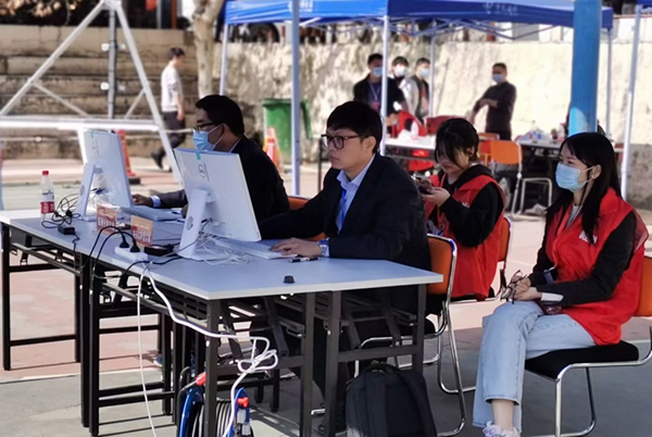 我校研究生在理論競賽現(xiàn)場進行裁判工作。電信學(xué)院供圖