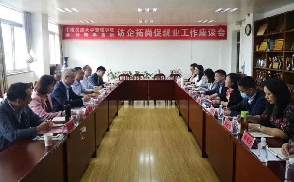 5月19日上午,管理學院邀請武漢烽火與時投資有限公司等5家知名會計師事務所領導來校,參加訪企拓崗促就業工作座談會。校黨委常委、總會計師喬俊杰,學院班子成員及相關教研室代表參加座談。院黨委書記鄒反修主持會議。