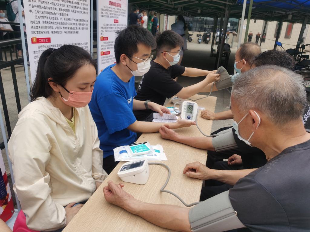 本次活動中,生醫(yī)學院師生黨員志愿者為社區(qū)居民現場普及了常用醫(yī)療器械的使用注意事項及安全常識,為現場居民免費測量血壓,發(fā)放裝有口罩、酒精濕紙巾等防疫物資的暖心禮包。師生黨員志愿者發(fā)揮專業(yè)優(yōu)勢,根據每個人的具體情況,給出意見或建議。針對血壓偏高的老年人,志愿者們還會反復叮囑他們注意飲食、適當鍛煉,增強健康意識等。