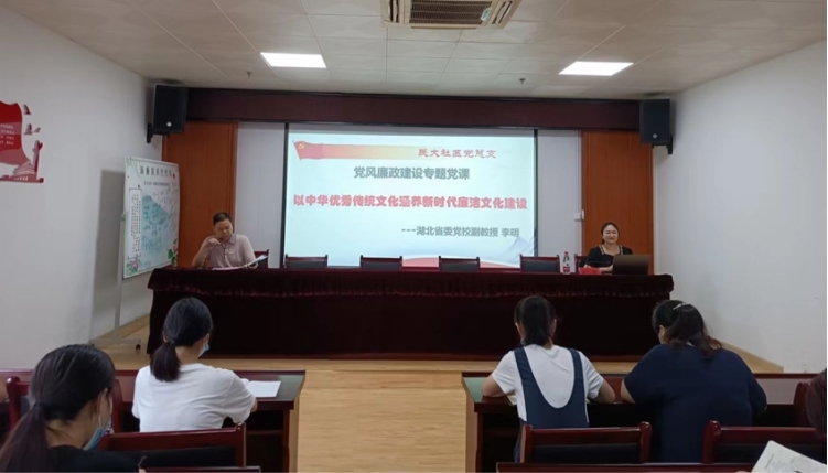為慶祝中國共產黨成立101周年,喜迎黨的二十大勝利召開,促進社區廉潔文化建設,7月7日,民大社區黨支部開展紅色七月主題黨日活動。湖北省委黨校李明副教授應邀作廉政文化專題授課,社區黨支部書記龔乃超主持活動并上黨課,社區全體黨員到場聽課。