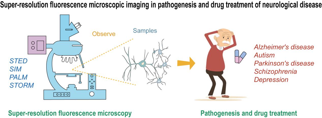 文章概述了超分辨熒光顯微鏡成像技術(shù)在神經(jīng)疾病發(fā)病機(jī)制和藥物治療中的作用和發(fā)展前景,主要介紹了幾種經(jīng)典的超分辨熒光顯微鏡成像原理[STED、PALM、(S)SIM、STORM],并比較了其優(yōu)缺點(diǎn),闡述了它們在神經(jīng)系統(tǒng)疾病研究中的應(yīng)用。超分辨熒光顯微鏡的應(yīng)用仍處于發(fā)展階段,陽小飛教授團(tuán)隊(duì)總結(jié)了不同超分辨熒光顯微鏡的應(yīng)用優(yōu)勢及局限性,針對超分辨熒光顯微鏡在神經(jīng)疾病和相關(guān)藥物研發(fā)中的應(yīng)用進(jìn)行了歸納分析,并對超分辨顯微鏡在這一領(lǐng)域未來的研發(fā)和應(yīng)用方向進(jìn)行了展望,為神經(jīng)疾病的發(fā)病機(jī)制研究和藥物開發(fā)提供了依據(jù)。