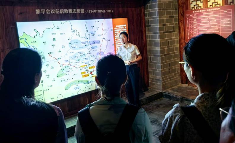 研修期間,全體教師聆聽了貴州省委政策研究室原副主任吳祖平所作的《多彩貴州話古今》專題報告,深入了解了貴州省獨特的地理位置、深厚的歷史底蘊、多彩的文化構成、良好的生態環境和新時代取得的輝煌成就。大家還前往黔靈山、“中國天眼”、鎮遠古鎮、肇興侗寨等地實地參觀考察,在解放貴州革命烈士紀念碑前和黎平會議會址開展現場教學,就進一步加強新時代思政課建設開展研討交流。