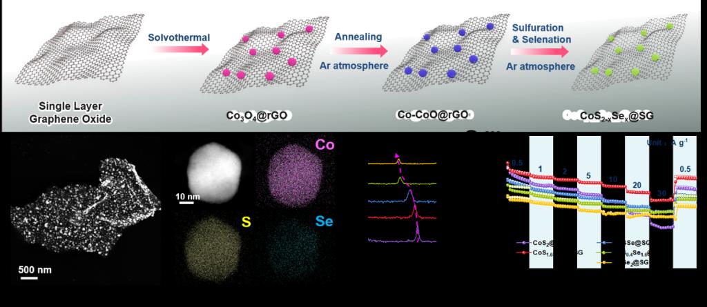 CoS2-xSex@SG的結構與倍率性能。化材學院供圖