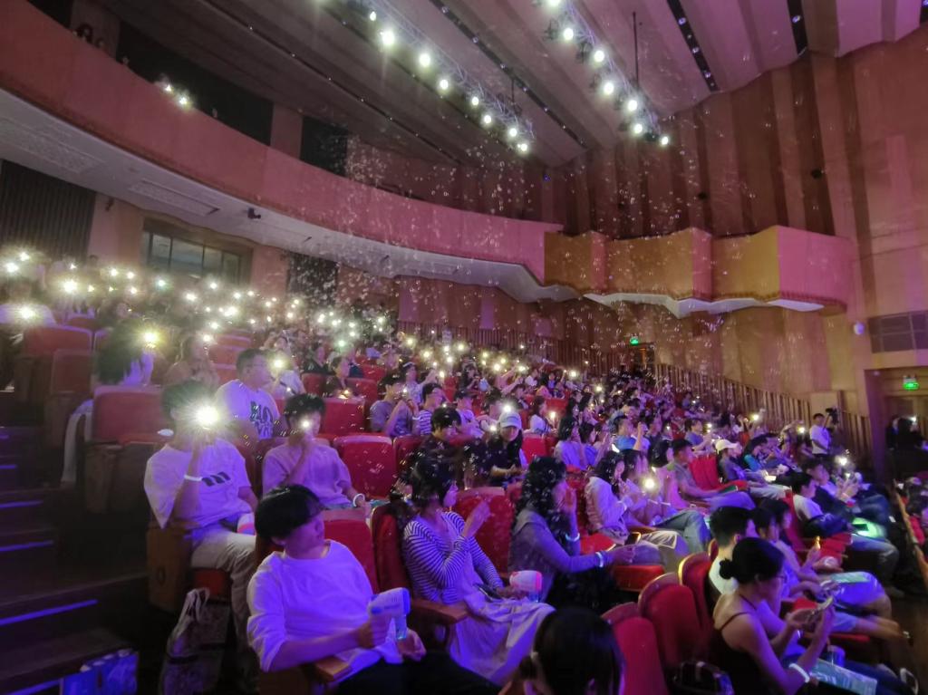 觀眾打開手機燈光與臺上相和。 鄧思彤攝