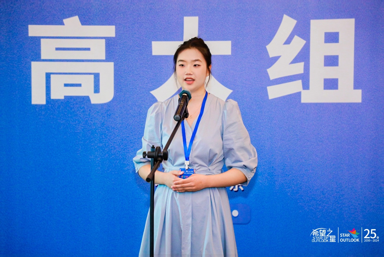 7月31日至8月3日,第25屆“希望之星”風(fēng)采展示大會年度盛典(全國總決賽)在北京舉行。我校外語學(xué)院翻譯專業(yè)2022級本科生袁瀾同學(xué)在馮艷玲、皋峰、金玲三位老師指導(dǎo)下,經(jīng)過四輪激烈地角逐,以91.2的高分榮獲“大學(xué)成人組”特等獎,摘得全國總冠軍桂冠。