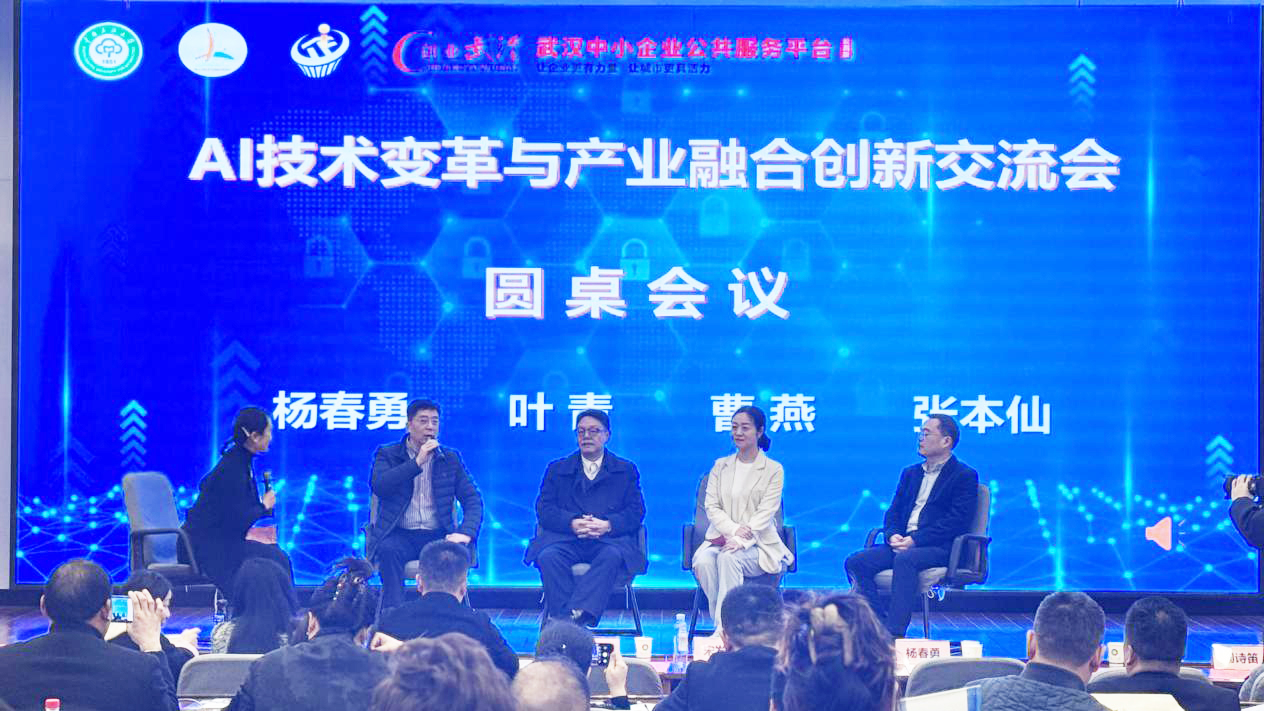 葉青、曹燕、張本仙、我校電子信息工程學院院長楊春勇4位嘉賓圍繞AI對社會經濟、行業企業、人才培養方面的影響進行了主題報告,并在隨后的圓桌論壇環節DeepSeek技術應用、AI對中小企業影響、2025年商業模式展望等熱點話題同現場參會人員展開深入探討。