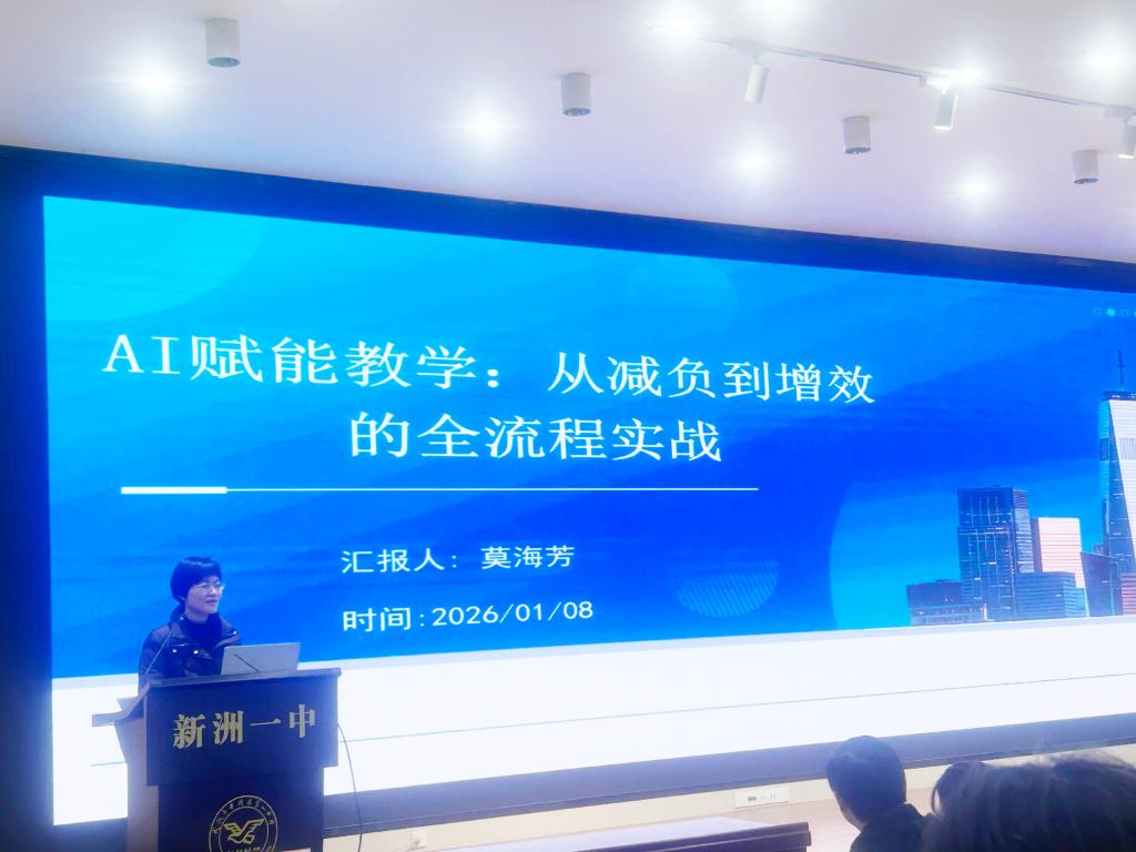 1月8日,計(jì)算機(jī)學(xué)院(人工智能學(xué)院)教師莫海芳應(yīng)邀赴新洲一中陽(yáng)邏校區(qū),為該校第四屆教學(xué)節(jié)作題為《AI賦能教學(xué):從減負(fù)到增效的全流程實(shí)戰(zhàn)》的科普講座。參加講座的有新洲一中和新洲三中約260名教師,現(xiàn)場(chǎng)反響熱烈。