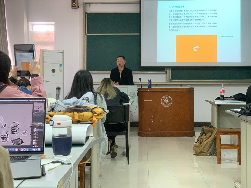 “在視覺(jué)傳達(dá)設(shè)計(jì)專業(yè)的教學(xué)中,我更希望能夠扮演起一個(gè)引導(dǎo)者的角色,更多地挖掘?qū)W生的內(nèi)在潛能,這樣能夠更好地促進(jìn)學(xué)生的全面發(fā)展。”王志勇老師這樣認(rèn)為,也是這樣做的。在課堂教學(xué)上,他始終堅(jiān)持與時(shí)俱進(jìn)、因材施教。考慮到視覺(jué)傳達(dá)設(shè)計(jì)專業(yè)是一個(gè)與時(shí)代發(fā)展緊密聯(lián)系的專業(yè),王老師每個(gè)學(xué)期初都會(huì)對(duì)課件進(jìn)行一次更新,結(jié)合設(shè)計(jì)專業(yè)的新技術(shù)和設(shè)計(jì)市場(chǎng)的新需求,對(duì)教學(xué)內(nèi)容和教學(xué)方法進(jìn)行修改優(yōu)化。王老師的課程涉及字體設(shè)計(jì)、品牌形象設(shè)計(jì)、專業(yè)寫生等諸多方面。在課上,他通過(guò)計(jì)算機(jī)將美術(shù)與互聯(lián)網(wǎng)相結(jié)合,配合AI、PS、Procreate等電腦軟件,實(shí)現(xiàn)書面和電子的美術(shù)呈現(xiàn)教學(xué)。在授課過(guò)程中,王志勇老師也十分注重因材施教,顧及學(xué)生的實(shí)際情況。深知單純的理論學(xué)習(xí)對(duì)學(xué)生們來(lái)說(shuō)是枯燥乏味的,王老師在課堂教學(xué)上力求生動(dòng)易懂,結(jié)合實(shí)際設(shè)計(jì)項(xiàng)目與作品促進(jìn)學(xué)生理解理論知識(shí),通過(guò)外出寫生、參觀藝術(shù)作品展幫助學(xué)生深入理解設(shè)計(jì)的魅力。