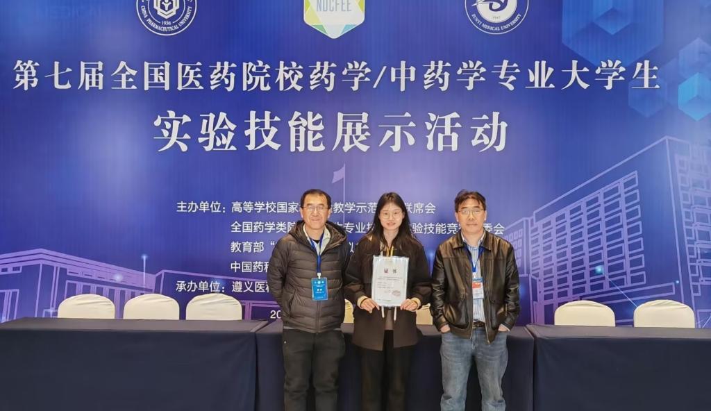 圖為康欣怡參加第七屆全國醫(yī)藥院校藥學(xué)、中藥學(xué)專業(yè)大學(xué)生實(shí)驗(yàn)技能展示活動(dòng)留念