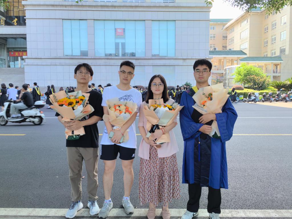 與指導(dǎo)的研究生合影。