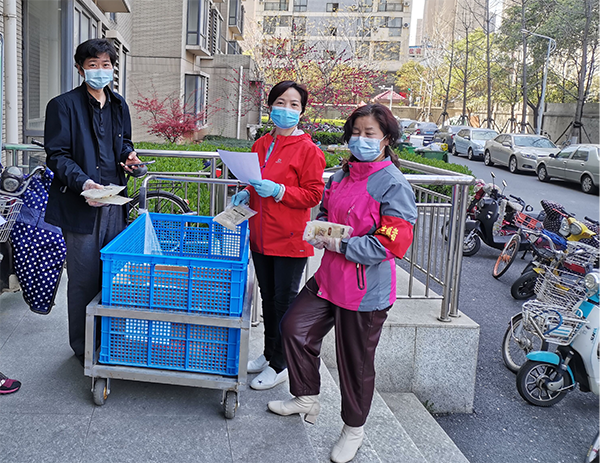 在民大社區中,梅老師所在的樓棟里有數十個退休老人,情況復雜,工作的挑戰性大。剛接手這份工作,梅老師和志愿者邊摸索邊學習,找漏洞,不斷改進。第一次發物資是懵的,第二次她就開始編寫配送方案。經過不斷完善,她采用“電梯配送、紙箱接收”的物資傳遞方式,減少了交叉感染的風險。
