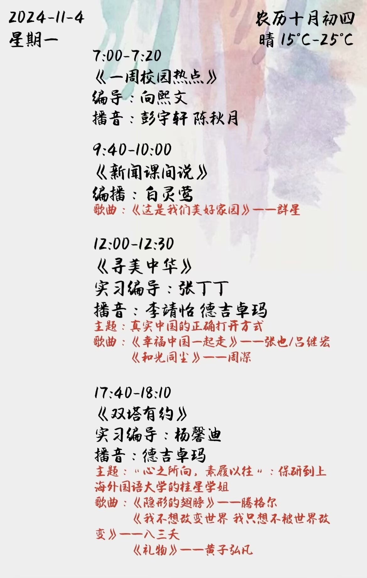 上一篇: 雙塔之聲2024年第二學期第11周節目單(2024.11.11-11.15)