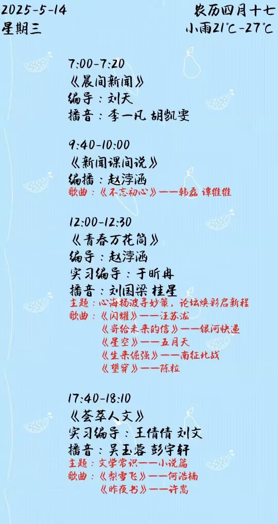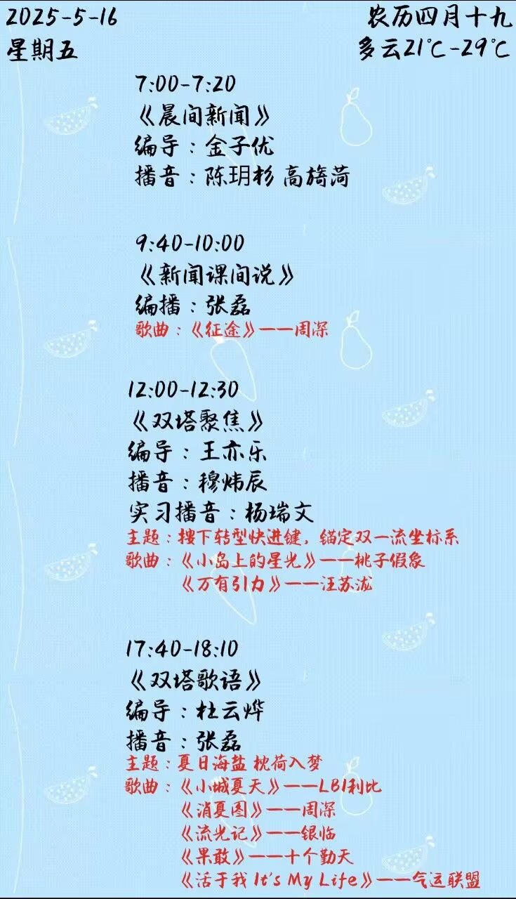 下一篇: 雙塔之聲2025年第一學期第11周節目單(2025.5.6-5.9)