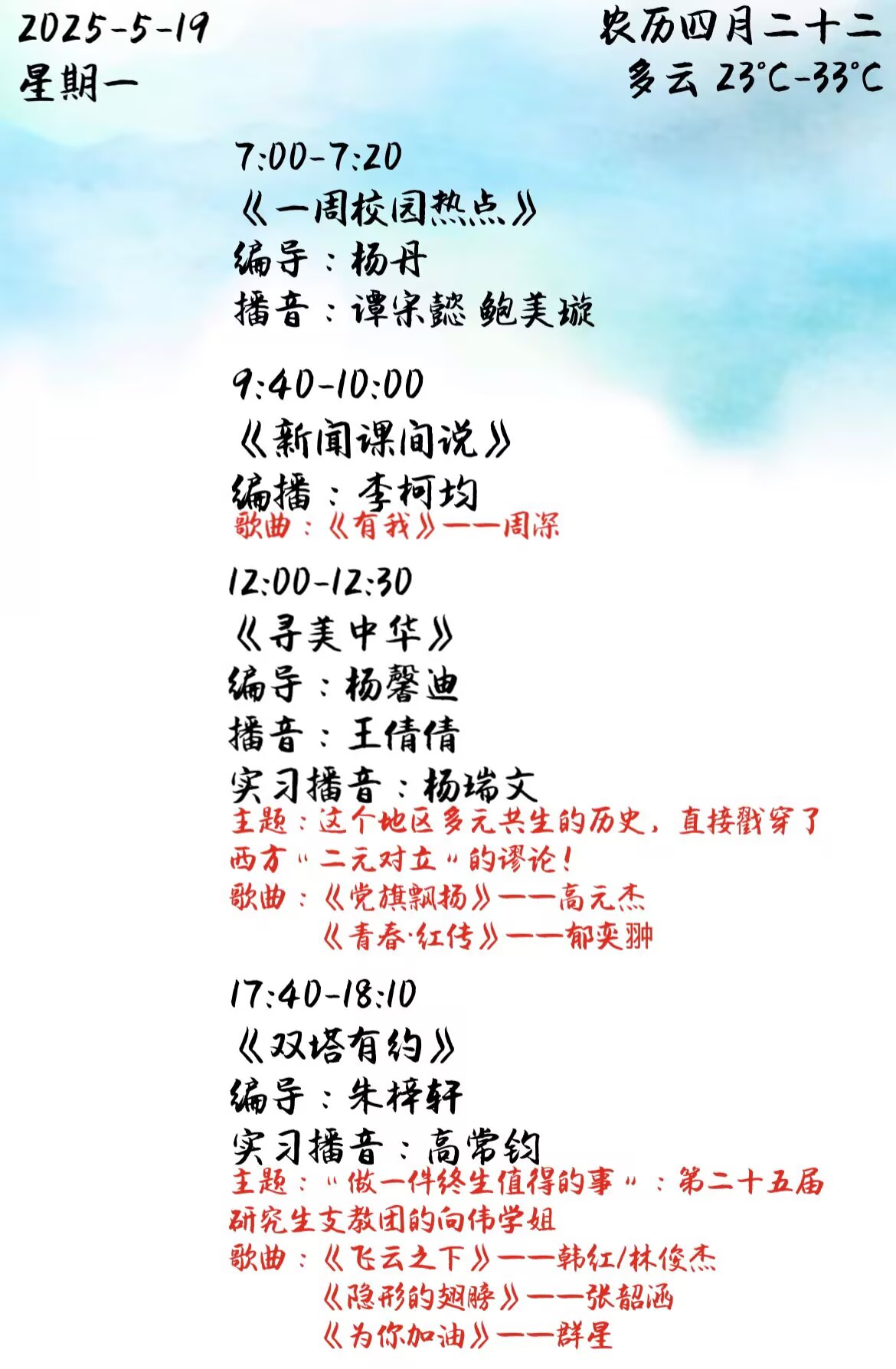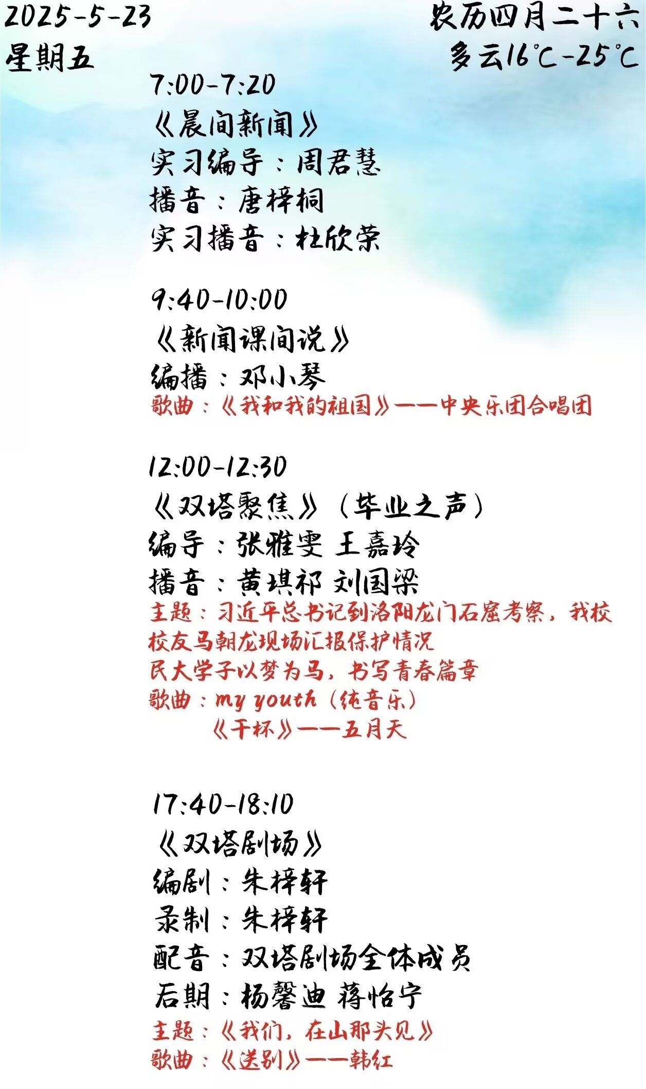 下一篇: 雙塔之聲2025年第一學期第12周節(jié)目單(2025.5.12-5.16)