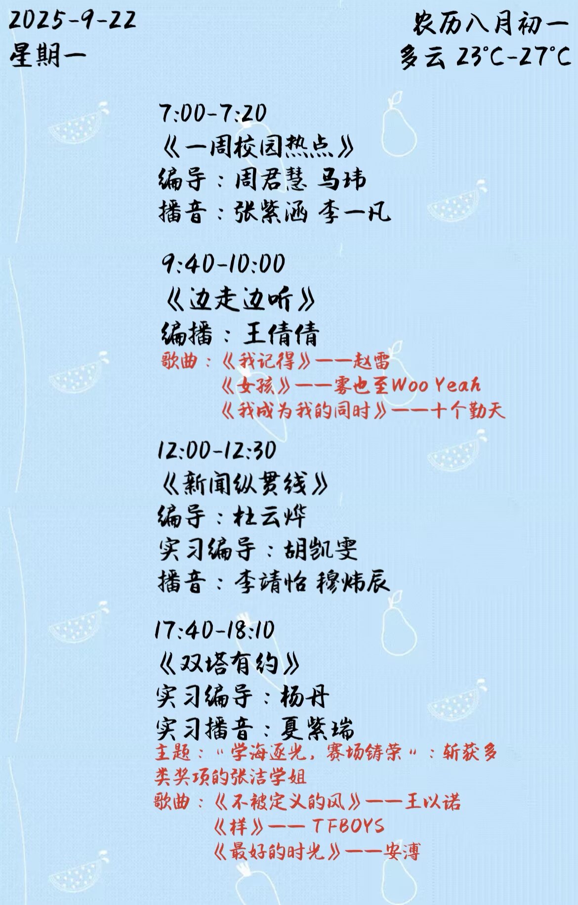 下一篇: 雙塔之聲2025年第二學期第2周節目單(2025.9.15-9.19)