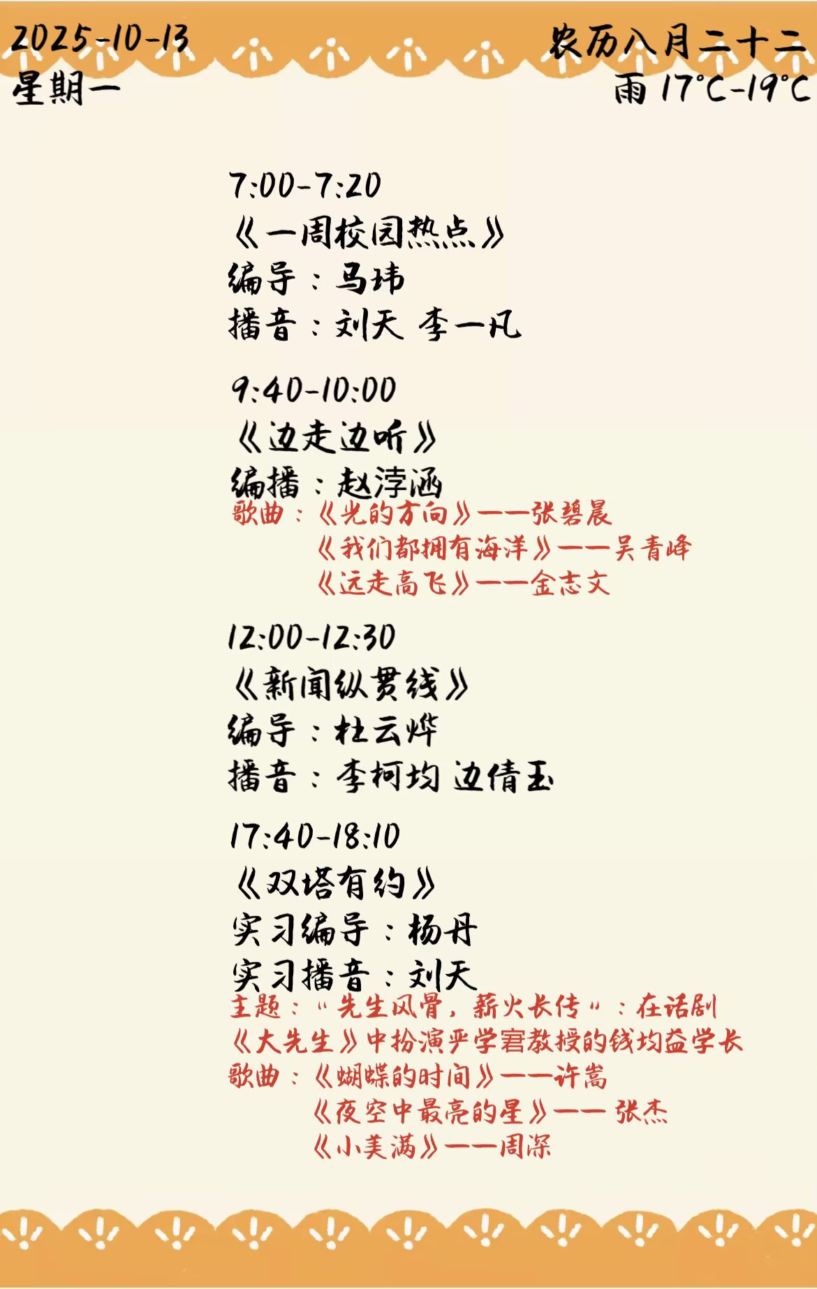 上一篇: 雙塔之聲2025年第二學期第7周節目單(2025.10.20-10.24)