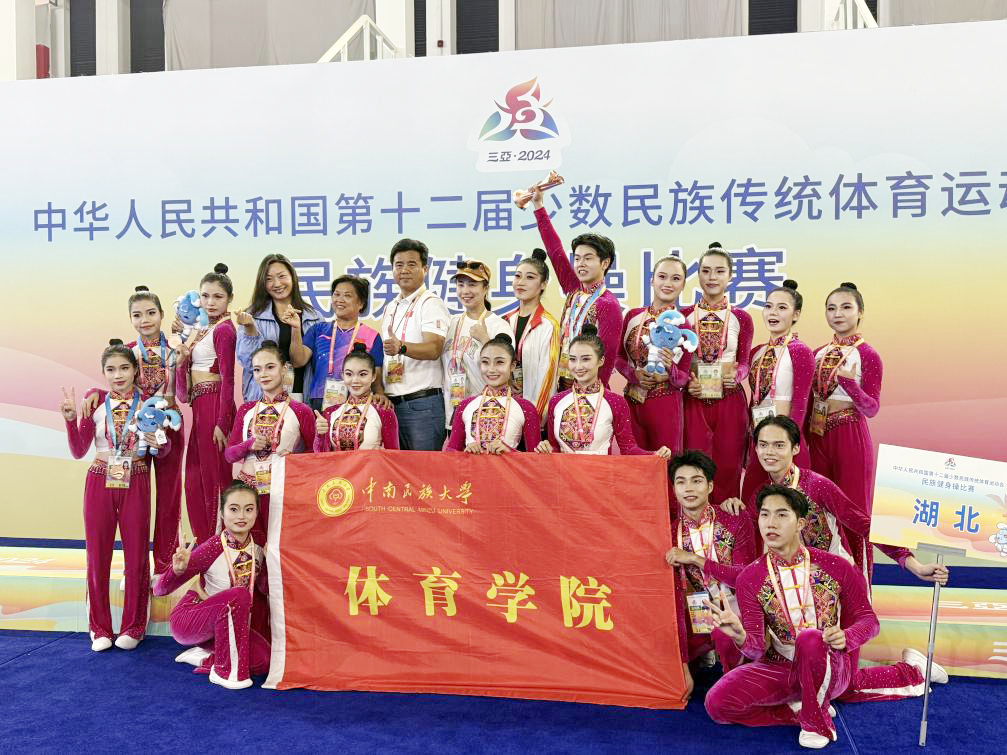 11月22日至30日,由國家民委和國家體育總局主辦、海南省人民政府承辦的中華人民共和國第十二屆少數民族傳統體育運動會于海南省三亞市舉行。以我校組成的湖北省民族健身操代表隊和表演項目代表隊運動健兒以其卓越的表現和頑強拼搏的精神,取得了驕人的戰績:民族健身操代表隊在規定套路和自選套路(輕器械)比賽分獲第八和第七名,綜合排名躍居全國第六,獲得三項銅獎,此外,表演項目(競技類)“旱船競速”獲得三等獎,獲獎數量創歷史新高。