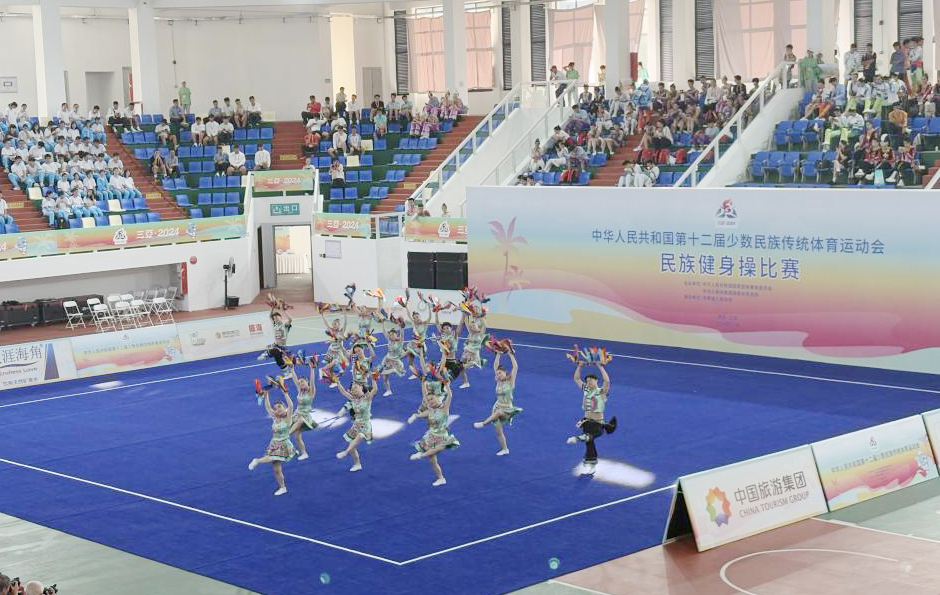 民族健身操自選套路(輕器械)比賽現場。 張津銘攝