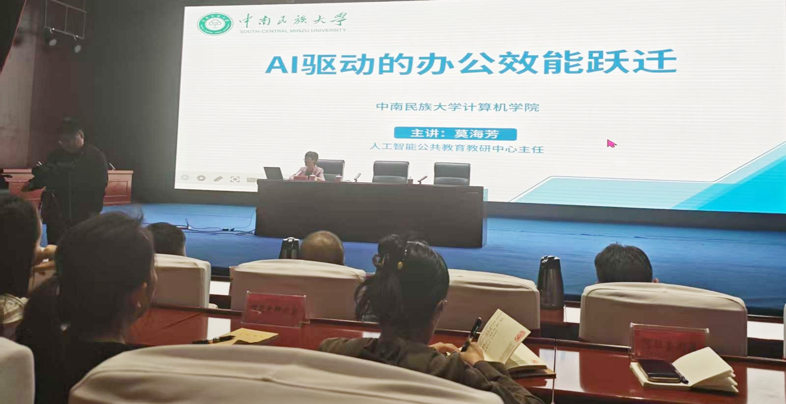 隨后,莫海芳副教授以《AI驅(qū)動的辦公效能躍遷》為題,進行了人工智能專題講座。她結(jié)合人工智能領(lǐng)域的前沿研究和實際應(yīng)用案例,深入淺出地闡述了人工智能的基本概念、時代價值與現(xiàn)實挑戰(zhàn),并詳細介紹了人工智能在提升辦公效能方面的具體應(yīng)用。此次講座不僅加深了現(xiàn)場觀眾對人工智能這一熱門領(lǐng)域的認識和理解,也極大地激發(fā)了大家對科技創(chuàng)新的濃厚興趣。