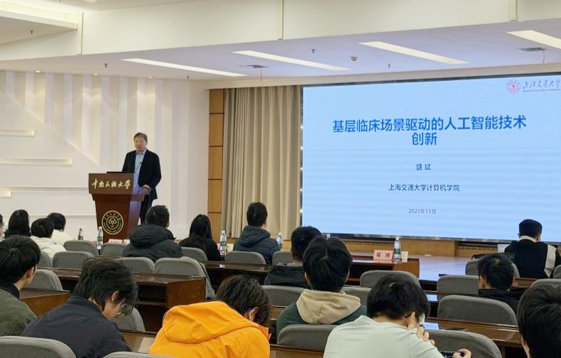 11 月 20 日,上海交通大學計算機學院人工智能教育部重點實驗室博士生導師盛斌教授應邀來校在學術交流中心做學術講座。此次講座以“基層臨床場景驅動的人工智能技術創新”為題,由我校計算機學院(人工智能學院)主辦,參會師生共同探討人工智能與醫學交叉領域的前沿發展。