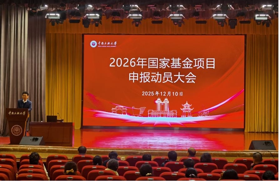 12月10日上午,學校在學術會堂召開2026年國家基金項目申報動員會。校黨委常委、副校長方德斌,各學院院長、科研副院長,校內外專家和教師,科學研究發展院全體人員共400余人參加會議。會議由科學研究發展院副院長蔡燦武主持。
