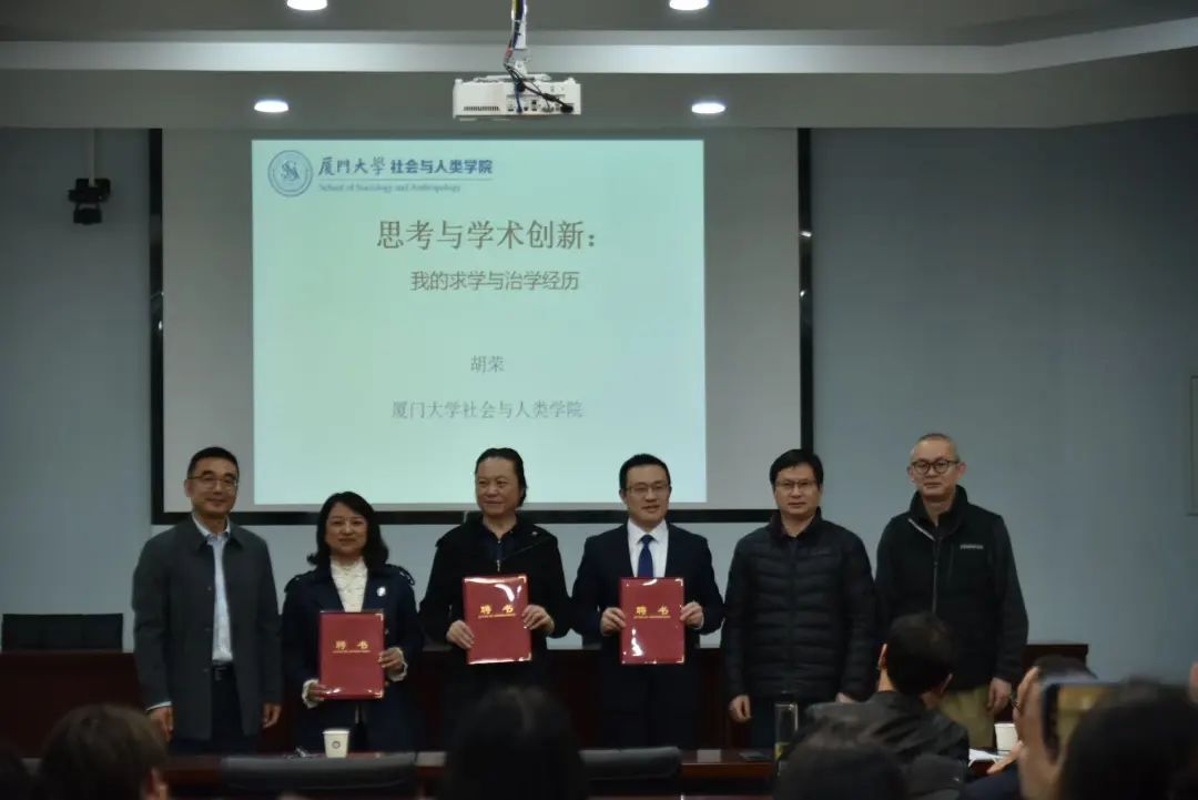 廈門大學社會與人類學院創院院長胡榮教授則以《思考與學術創新:我的求學與治學經歷》為題,分享了他從福建農村起步的學術生涯。他講述了從南開大學社會學到香港城市大學讀博,再到國外訪學的學術歷程,并分享了他在社會學領域的創新理論與實踐經驗。胡教授的分享不僅展現了他嚴謹治學的精神,也為在場師生提供了寶貴的學術啟發。最后,他與同學們進行了互動交流,并耐心解答了大家的提問。