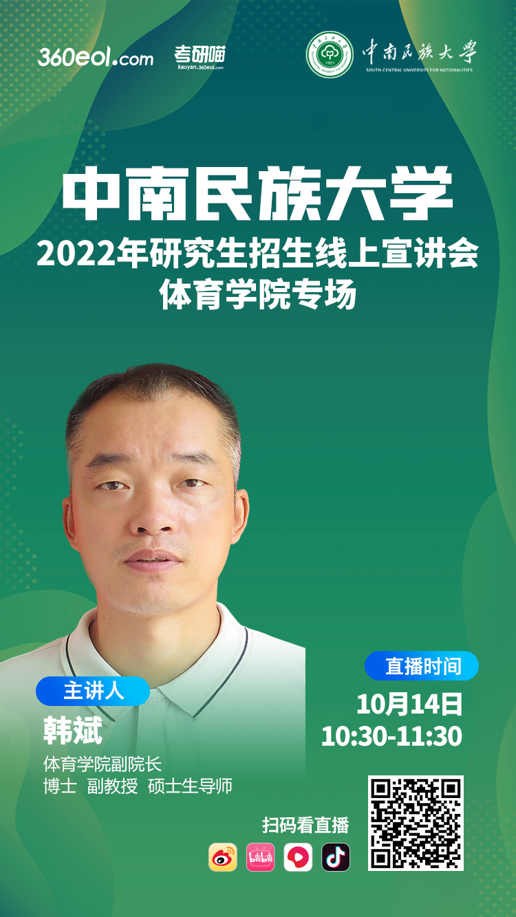 中南民族大學(xué)2022年研究生招生線上系列宣講會(huì)之九 ----體育學(xué)院專場(chǎng)