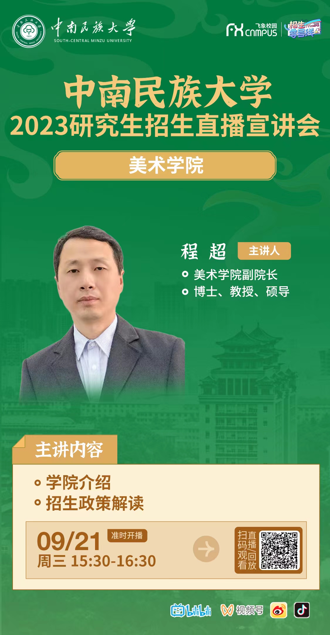 中南民族大學2023年研究生招生線上系列宣講會之七------美術學院專場(9月21日 15:30)