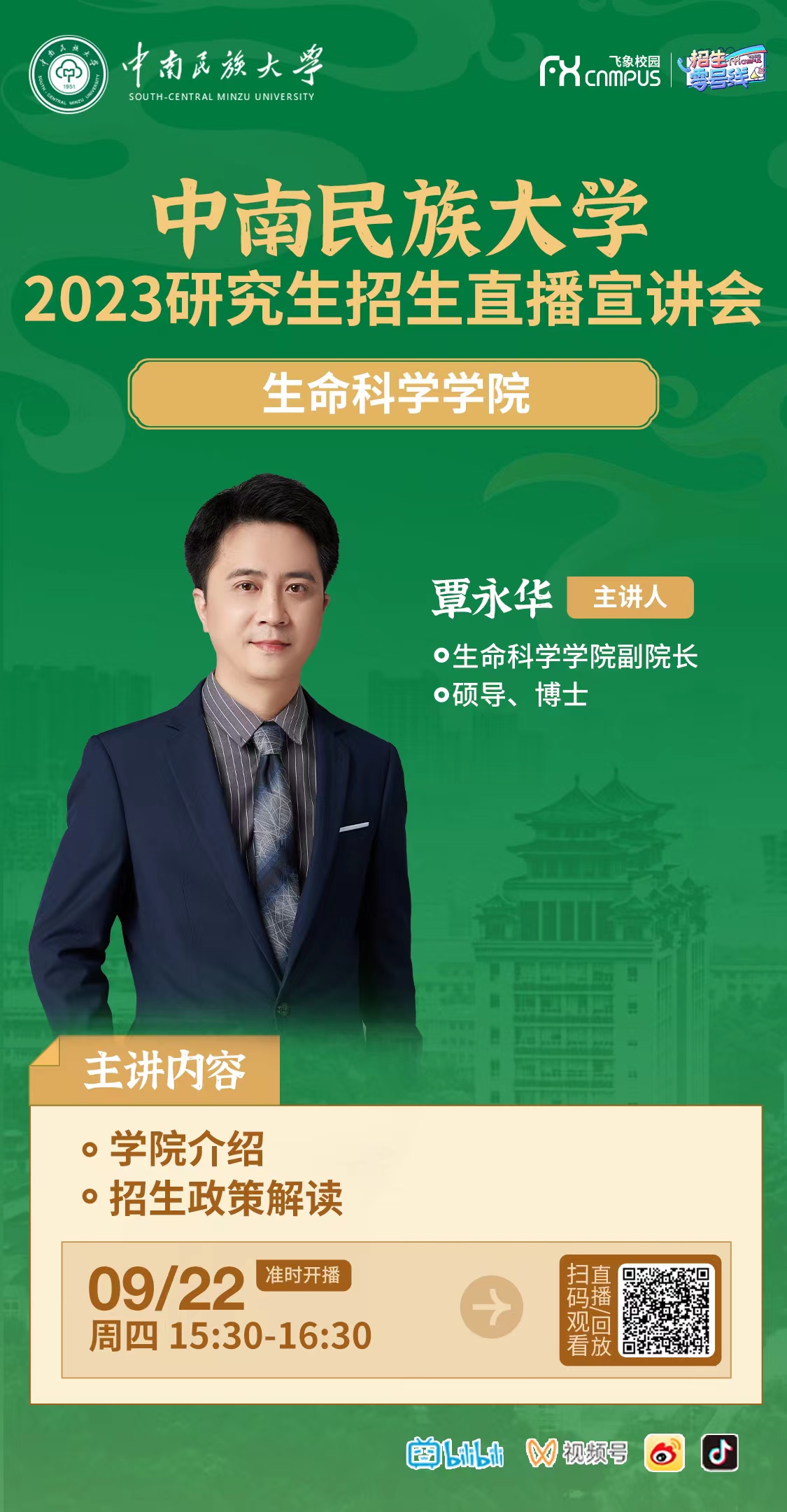 中南民族大學2023年研究生招生線上系列宣講會之九------生命科學學院專場(9月22日 15:30)