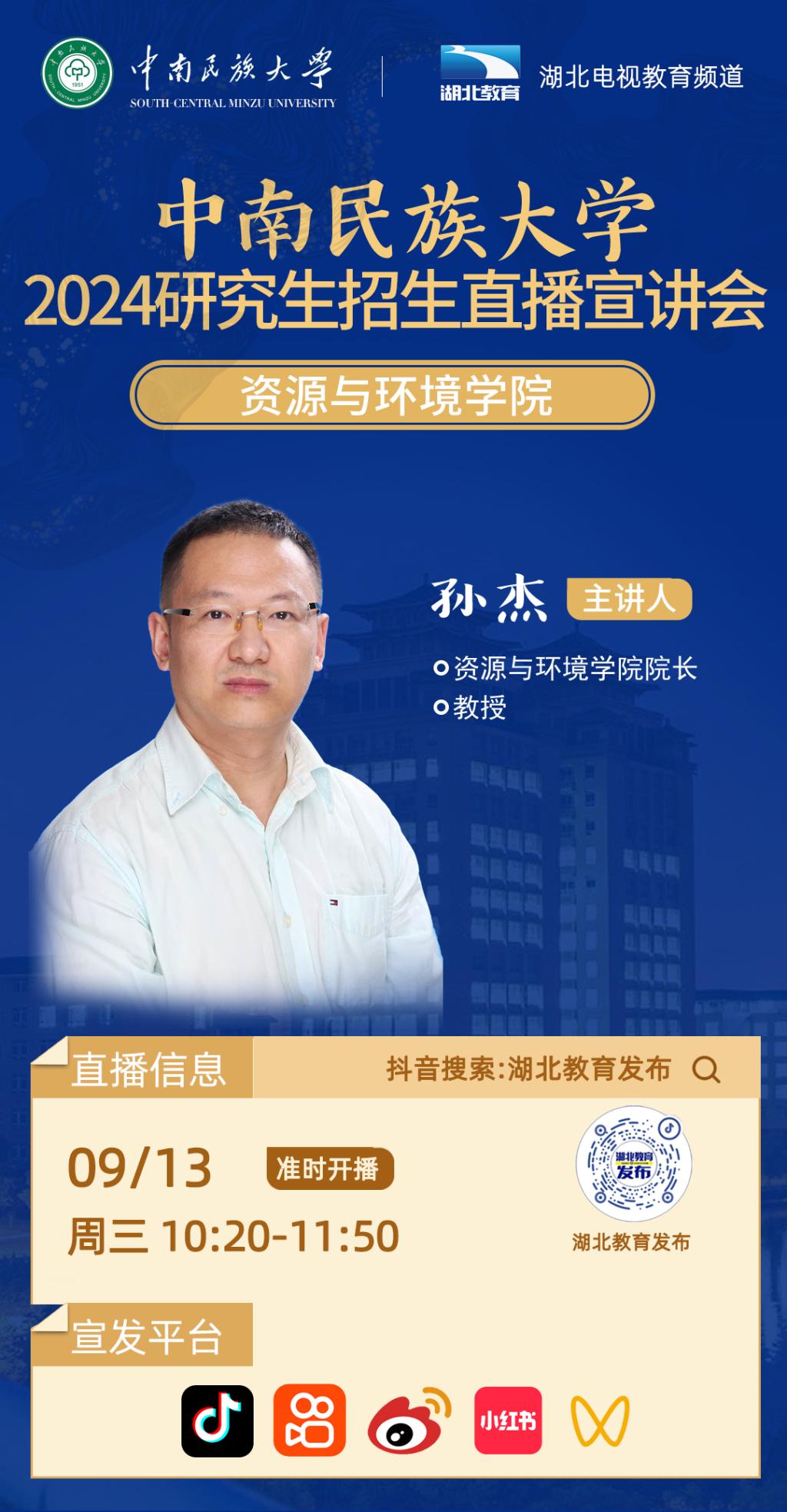 中南民族大學2024年研究生招生線上系列宣講會之二------資源與環境學院專場(9月13日 10:20)