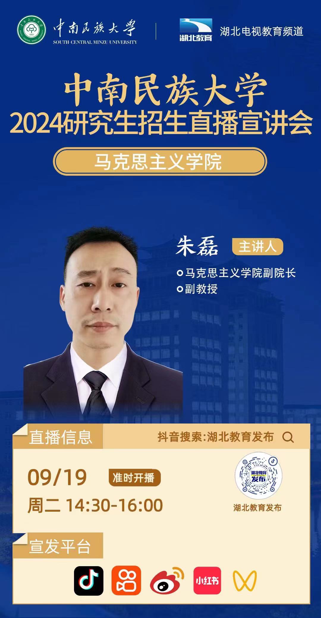 中南民族大學2024年研究生招生線上系列宣講會之七------馬克思主義學院專場(9月19日 14:30)
