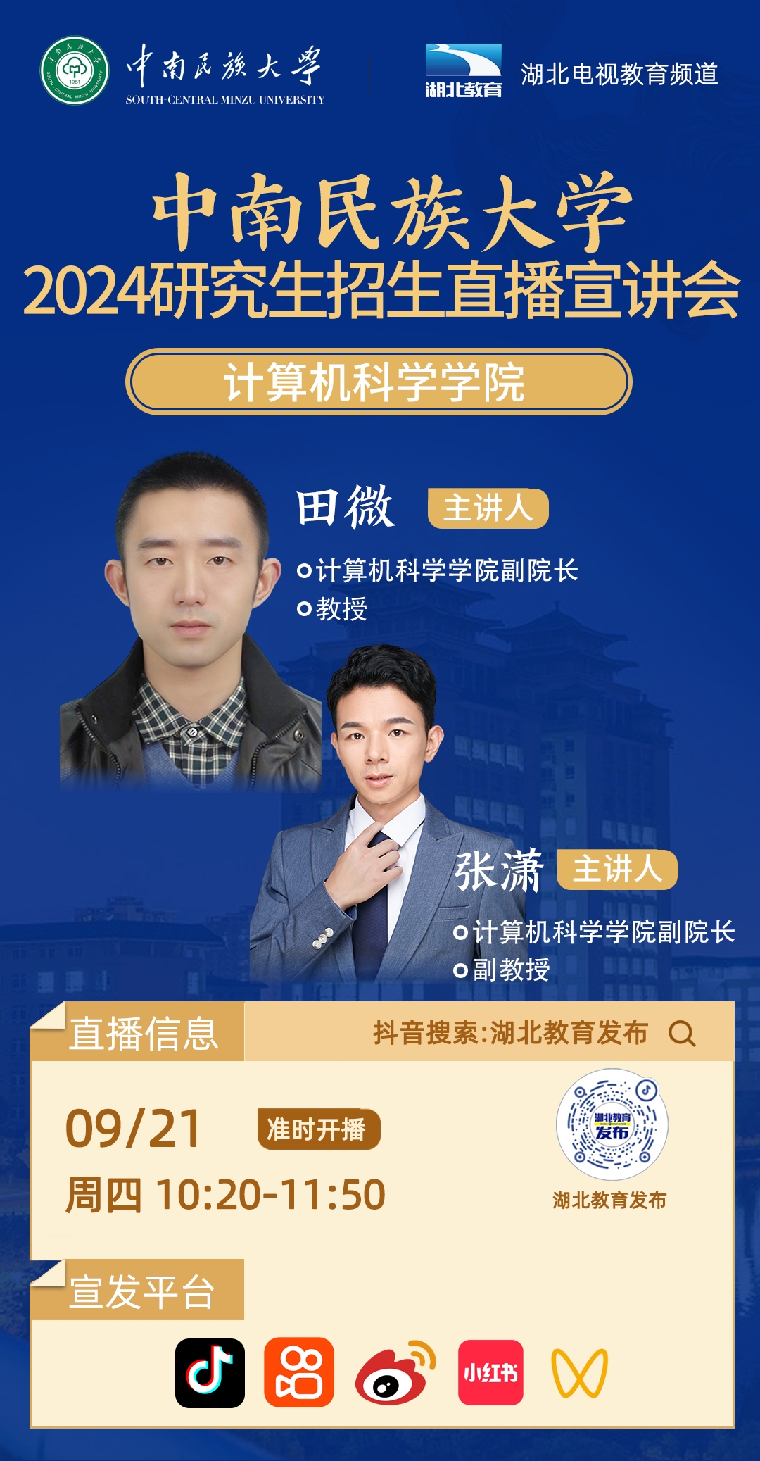 中南民族大學2024年研究生招生線上系列宣講會之九------計算機科學學院專場(9月21日 10:20)
