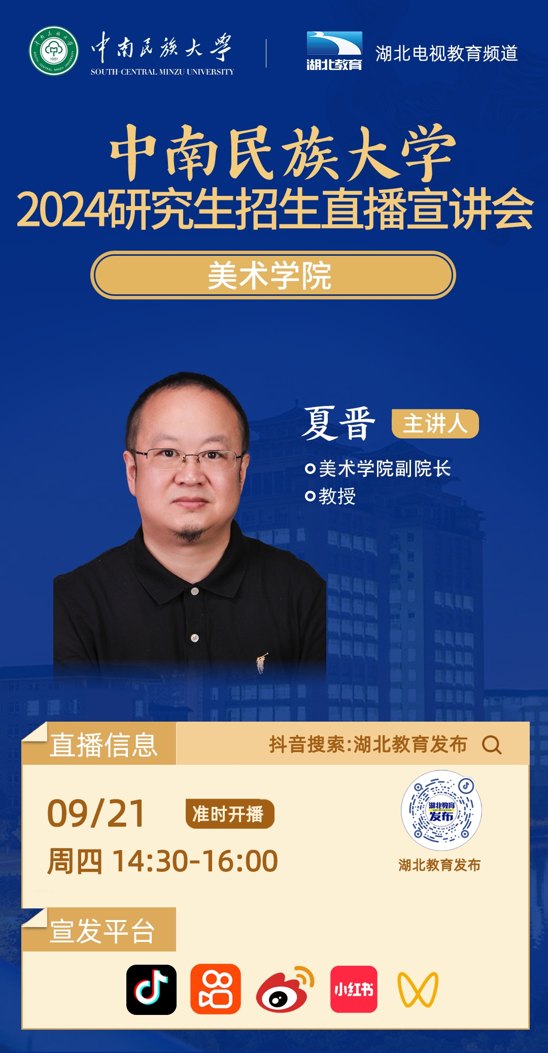 中南民族大學2024年研究生招生線上系列宣講會之十------美術學院專場(9月21日 14:30)