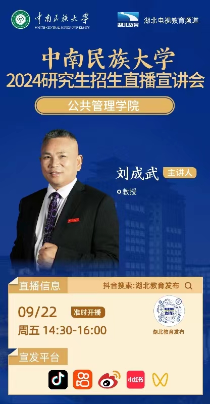 中南民族大學2024年研究生招生線上系列宣講會之十四------公共管理學院專場(9月22日 14:30)