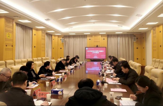 覃瑞對會議進(jìn)行了總結(jié)。他表示,研究生培養(yǎng)方案是人才培養(yǎng)的綱領(lǐng)性文件,是落實(shí)立德樹人根本任務(wù)、推進(jìn)學(xué)科建設(shè)與教育教學(xué)改革的重要抓手。本次修訂工作要以國家教育政策為導(dǎo)向,緊密結(jié)合學(xué)校學(xué)科發(fā)展實(shí)際,突出學(xué)科特色,優(yōu)化課程體系,強(qiáng)化實(shí)踐創(chuàng)新能力培養(yǎng)。他強(qiáng)調(diào),一是堅(jiān)持問題導(dǎo)向,聚焦專業(yè)學(xué)位培養(yǎng)學(xué)術(shù)化、研究生教學(xué)本科化、小課堂等問題,結(jié)合學(xué)科評估、畢業(yè)生調(diào)研反饋,精準(zhǔn)破解培養(yǎng)環(huán)節(jié)中的難點(diǎn);二是堅(jiān)持需求牽引,對接國家戰(zhàn)略和區(qū)域經(jīng)濟(jì)社會發(fā)展需求,積極推動人工智能賦能教育教學(xué),深化科教融匯、產(chǎn)教融合;三是強(qiáng)化責(zé)任落實(shí),各學(xué)院需成立專項(xiàng)工作組,廣泛征求師生意見,邀請學(xué)科評議組和專業(yè)學(xué)位教學(xué)指導(dǎo)委員會成員參加評議,確保修訂工作科學(xué)、規(guī)范、高效推進(jìn)。