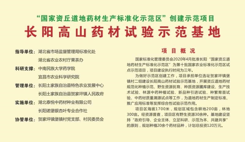 近日,中南民族大學藥學院與長陽縣特色農業發展中心、市場監管局、湖北康農種業股份有限公司共建的長陽土家族自治縣“資丘道地藥材”生產標準化示范區獲批列入第十批國家農業標準化示范區試點示范項目Ⅰ類項目。