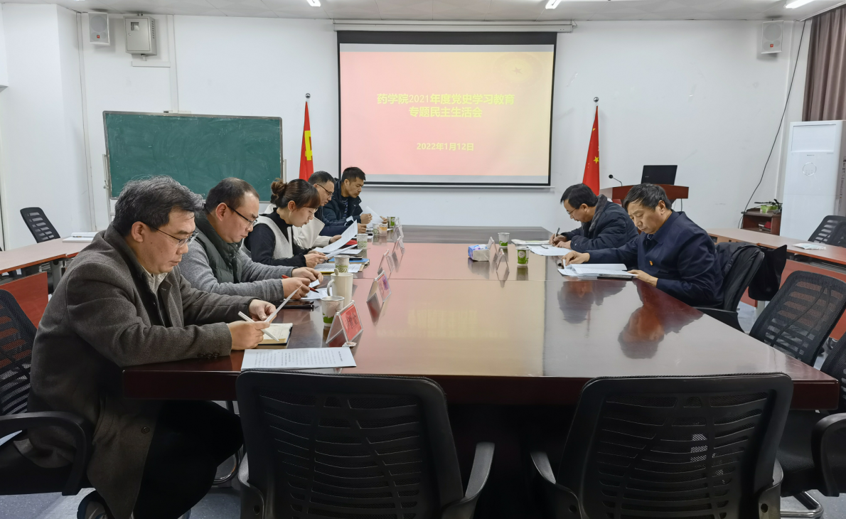 1月12日,藥學院2021年度黨史學習教育專題民主生活會在13-203會議室召開,校黨委常委、副校長杜冬云、校黨建督導組韋應忠出席。